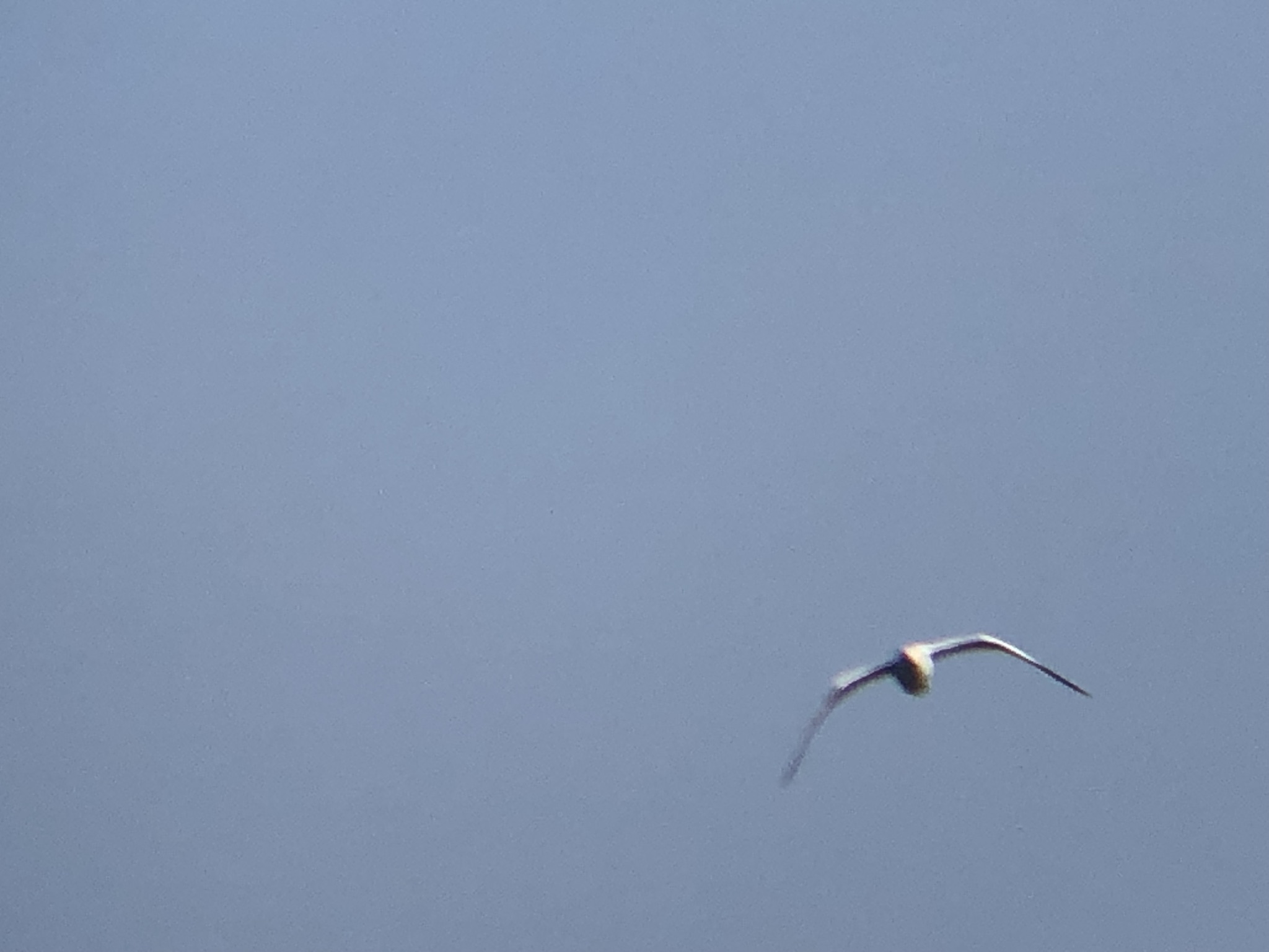 カモメかな。ウミネコかな。頭が白色で脚が黄色だったので、たぶんウミネコです。